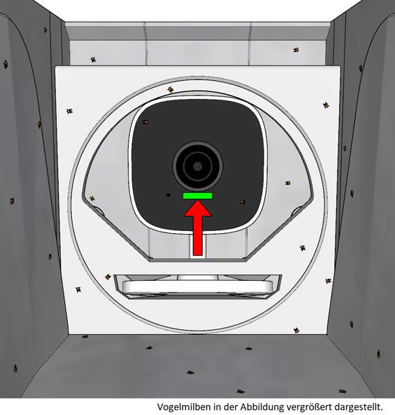 In Kamera-Nistkästen sind Vogelmilben ein Problem, denn sie krabbeln ständig über das Objektiv.