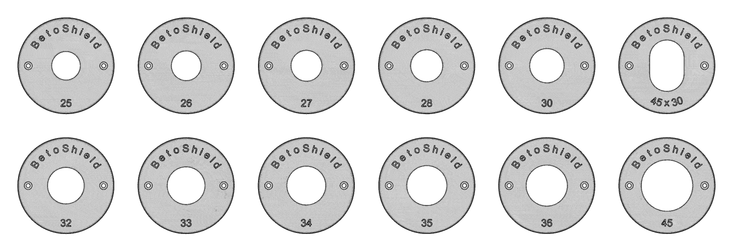 ⌀ 25 mm ⌀ 26 mm ⌀ 27 mm ⌀ 28 mm ⌀ 30 mm ⌀ 45 x 30 mm oval ⌀ 32 mm ⌀ 33 mm ⌀ 34 mm ⌀ 35 mm ⌀ 36 mm ⌀ 45 mm