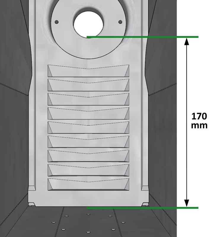• Der Abstand der Fluglochunterkante über dem Boden beträgt 170 mm bei einem Fluglochdurchmesser von 32 mm. Bei anderen Größen variiert der Abstand geringfügig.