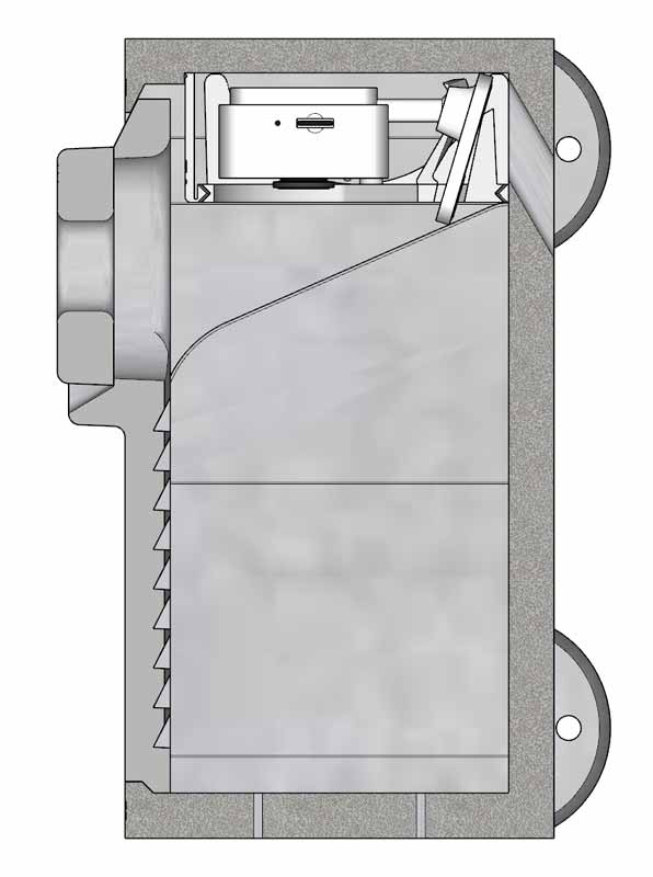 Der Durchlass ist schräg nach oben ausgeführt, damit Ihre Kamera trocken bleibt.