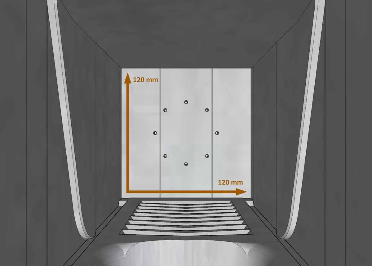 Maße Korpus (H x B x T) mit Frontelement und BetoShield Fluglochring: